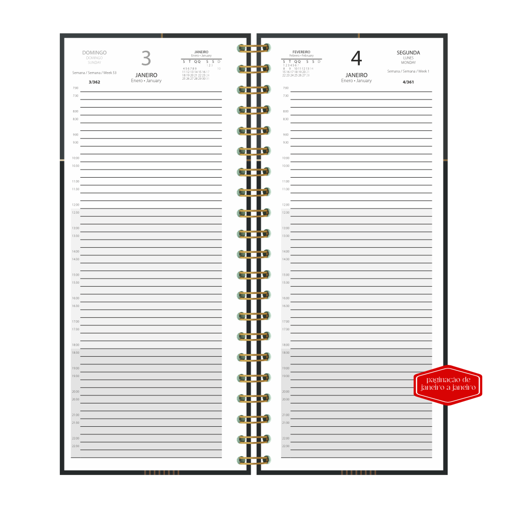 • miolo diário em 3 idiomas