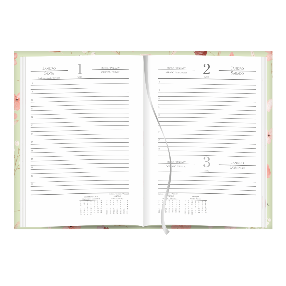 • miolo diário em 3 idiomas